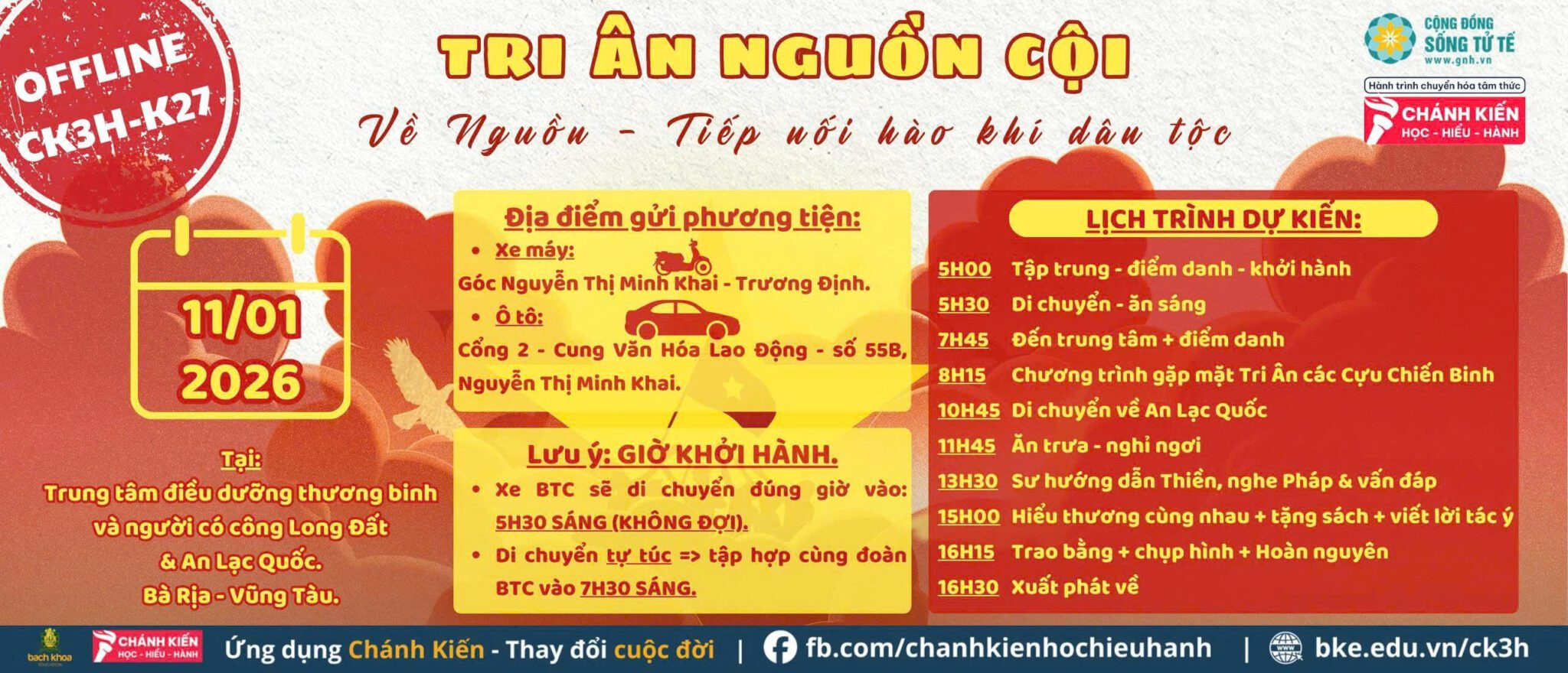 Bấm Để Đăng Ký Tham Gia Cùng CK3H[🌿Đăng Ký Mới – 11/01/2026] Hoạt Động Offline CK3H K27- Tri Ân Nguồn Cội Năm 2026 Tại Thành phố Hồ Chí Minh