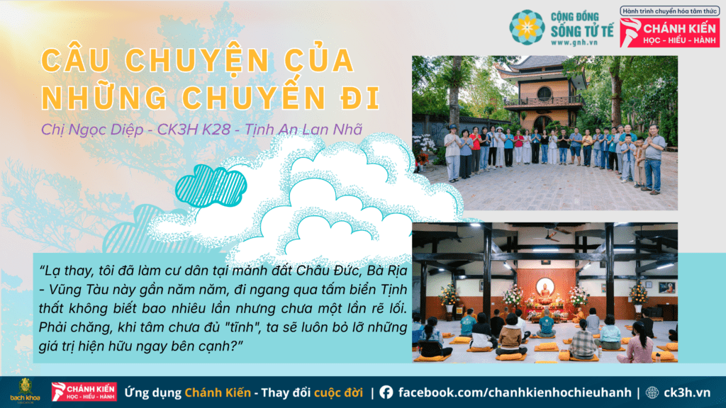 “Có những hành trình không đo bằng số cây số, mà bằng độ “tỉnh” của tâm thức. Những ngày 28 – 29/3/2026 cùng Chánh Kiến Học – Hiểu – Hành chưa xa, vậy mà nỗi nhớ đã đong đầy. Chiều nay, tôi trở lại Tịnh An Lan Nhã (Khemārāma), nơi vừa là bến đỗ, vừa là khởi đầu cho một chương mới trong hành trình chuyển hóa nội tâm của mình.